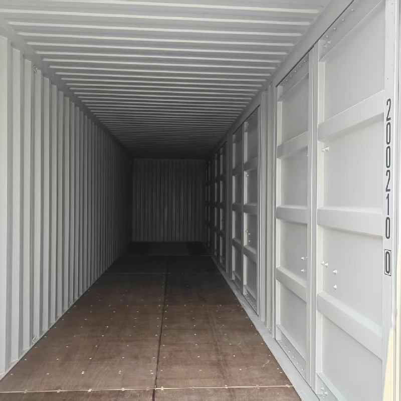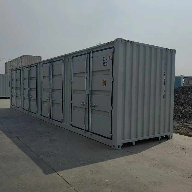 40-футовый контейнер кубика с 4 боковыми дверями сохраняет все функции и функции стандартного 40-футового контейнера куба (40HQ). Кроме того, конструкция с побочным открытием обеспечивает более быструю загрузку и разгрузку товаров; Это обеспечивает больше перспектив для проверки товара внутри контейнера; Если оснащены некоторыми запасными аксессуарами, такими как комплекты раздела, его можно легко преобразовать в контейнер с различными функциональными зонами. Боковая дверь также съемная, и, добавляя другие запасные аксессуары, такие как стеклянные двери, окна и перила, ее можно легче превратить в дом.